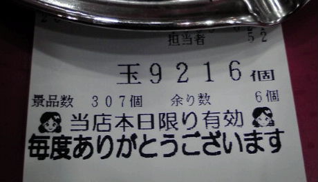 投資も少ないし、気分もいいので時短抜け即ヤメ、流すと9200玉。万発届かなかったか・・・